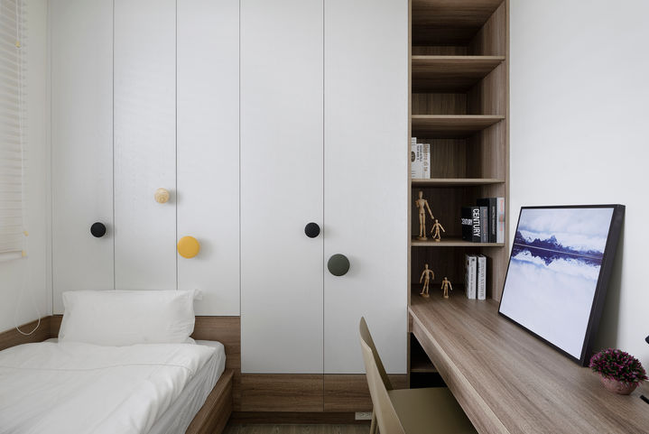 深木格櫃 × 條紋木皮 × 灰白鋪陳