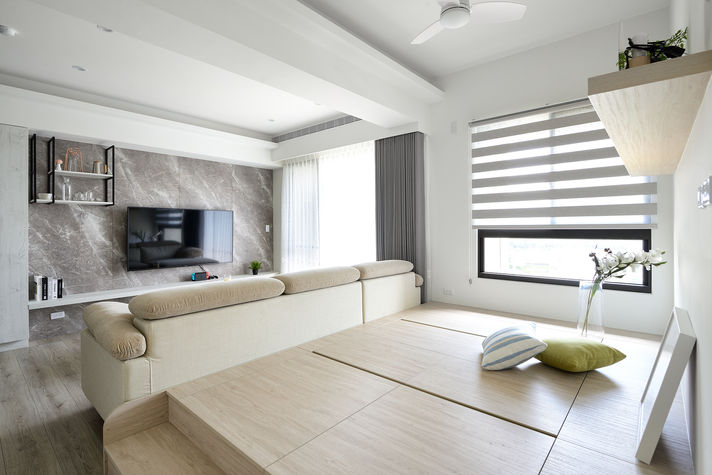 空間以溫潤木質為基調,鋪陳出家的自在節奏;局部以低彩度色塊強化牆面層次,兼具視覺記憶與收納機能。光線落下時,剛好勾勒出最純粹的生活感。